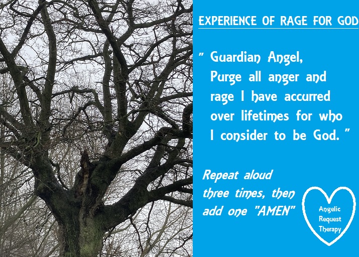 Asking your Guardian Angel to relieve lifetimes of anger or worse rage towards God, or who you perceive to be your creator, prevents you from accepting yourself, as each one of us carries the Light of God within ourselves.